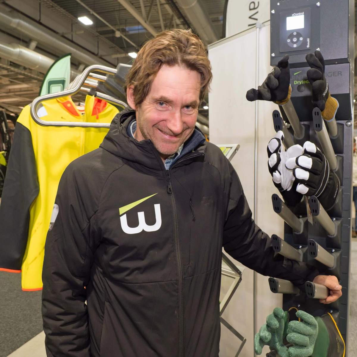 Wintersteiger spesialiserer seg på å tørke tøy. – Vi leverer til veldig mange ulike bransjer. Alle som har en jobb som er ute og blir våte og kalde, kommer til oss. Ofte via HR-avdelingen for å bedre arbeidsmiljøet, forteller salgssjef Lars Thronsen.